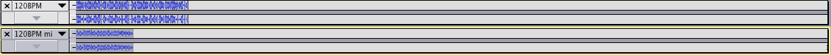 Pro mixování hudby potřebuješ ovládat mnoho postupů a dovedností. První jsi již splnil - vložil jsi do svého projektu tolik hudby, kolik chceš zmixovat - tedy dvě stopy. V každé stopě máš jednu hudbu. Pro mixování je vždy výhodné, aby tyto dvě skladby měli stejné temto, které se označuje jako BPM. Má skladba má 120. a v první stopě mám bicí doprovod v tomto tempu. Pokud ho chceš také, pak si stáhni následující soubor. Druhá skladba musí mít také stejné tempo a když budeš správně hledat např. na YouTube pak takovou hudbu lehce nalezneš a prostřednictvím programu aTubeCatcher si ji můžeš pro studijní účely stáhnout.