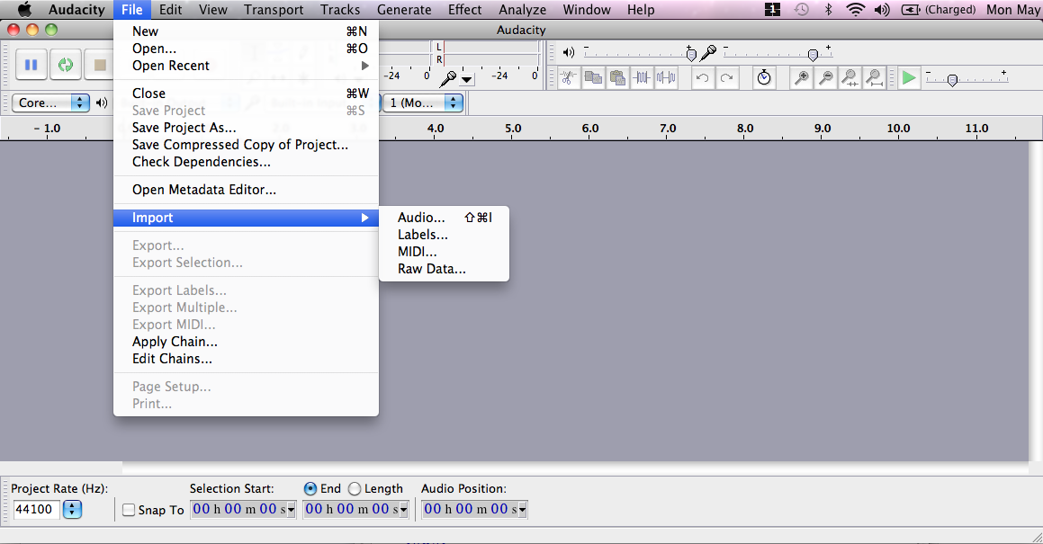 A jedeme na to. Program bez audia je jako hrad bez krále, takže první věc co se naučíme je vložení audia. Děje se to tak, že klikneš na příkaz File/Import/Audio...