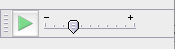 Pak je tam ale také panel pro přehrávání s nastavením rychlosti. Rychlost se nastavuje přesunutím posuvného ukazatele rychlosti. Pokud nastavíš rychlost ve směru doprava, pak skladbu zrychluseš a ve směru doleva spomaluješ. Ale toto nastavení se dá přehrát jen jediným tlačítkem pro přehrávání - jak ukazuje obrázek.