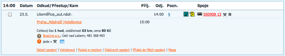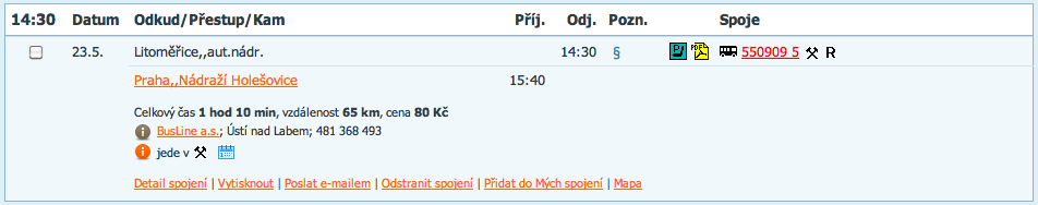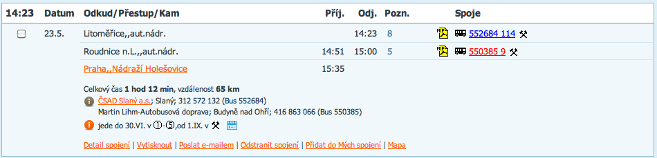 - Když se nám požadované informace nezamlouvají, nebo zjistíme, že jsme udělali chybu při vakládání vstupních údajů, můžeme se opravit pomocí tlačítek Změnit zadání nebo Nové zadání. Tlačítko Zpáteční spojení je nám doufám jasné. Pokud ne, tak pomocí něj vyhledáte okamžitě zpáteční spojení bez nutnosti vyplňovat údaje. Poslední tlačítko Trvalý odkaz využijí jen ti, kteří vytvářejí internetové stránky prostřednictvím HTML, takže pro vás to bude aktuální později.